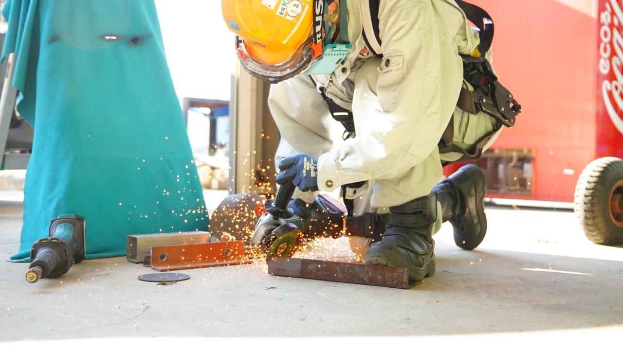 鉄板の加工や溶接、ガス切断といった製缶業務は、向山エンジニアの基礎となる技術です。現場で必要となる部材を加工し、設備や構造物として形にしていくことで、工事全体を支えています。細かな精度が求められる場面も多く、確かな技術力が信頼につながっています。